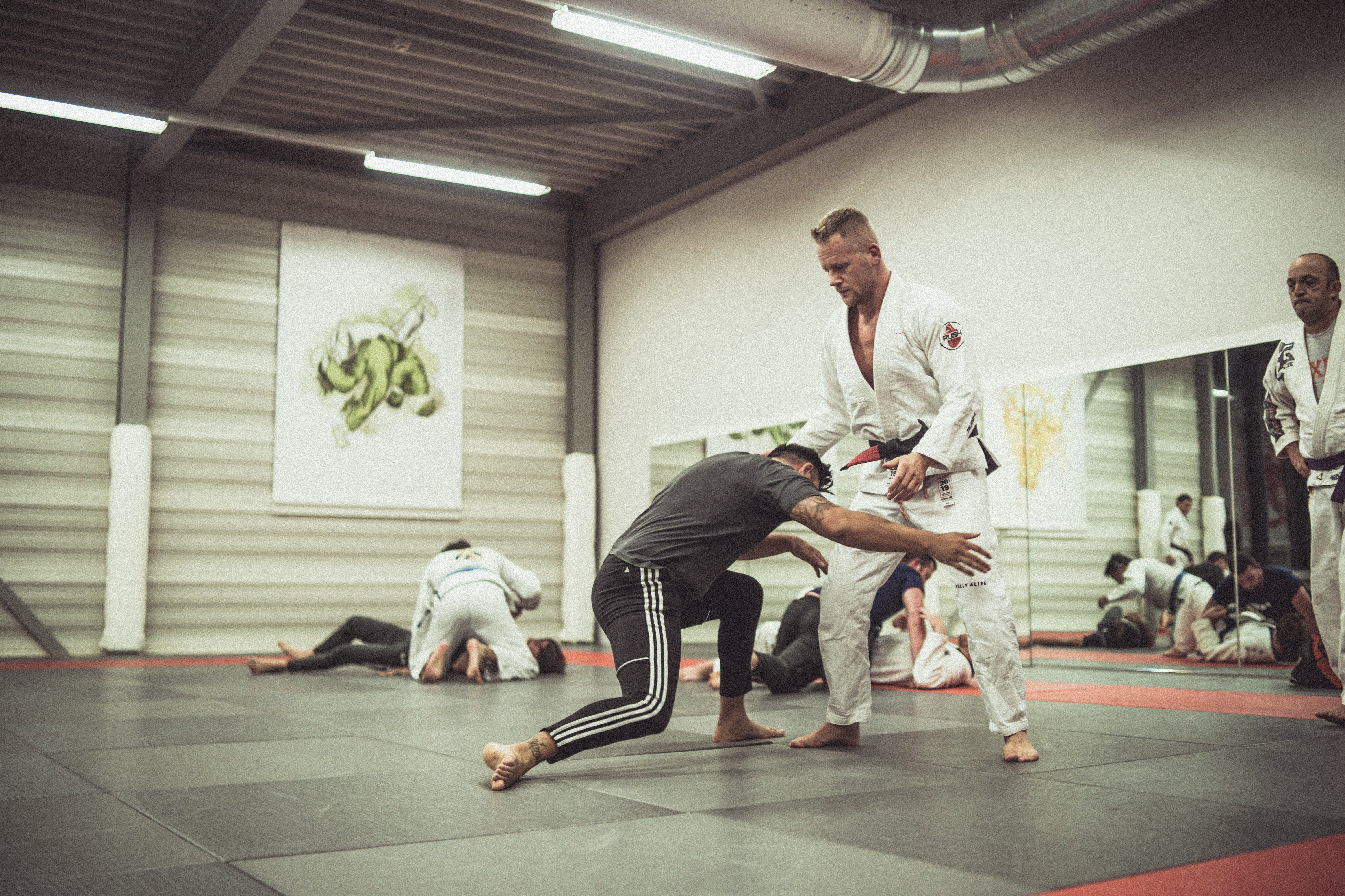 Een eerste les is altijd lastig, wat ga je nu vertellen…? In feite kun je uren doorgaan over de posities, klemmen enz. en waarom ik denk dat BJJ een sport is die heel veel mensen in deze maatschappij kan helpen. Maar wat is té en wat ga je wel en niet uitleggen? Hoe technisch moet het worden of moet je vooral focus hebben op plezier? Hoge intensiteit of lage? Je wil natuurlijk niemand wegjagen….